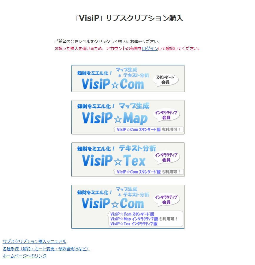 1)ログインした状態で、サブスクリプション購入をクリックすると、下図を表示。